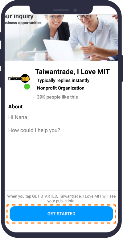 Click Get Started and allow"Taiwantrade, I Love MIT" to contact you.