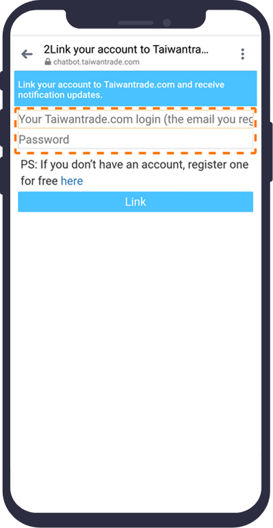 Enter your Taiwantrade.com account (email) and password to connect.